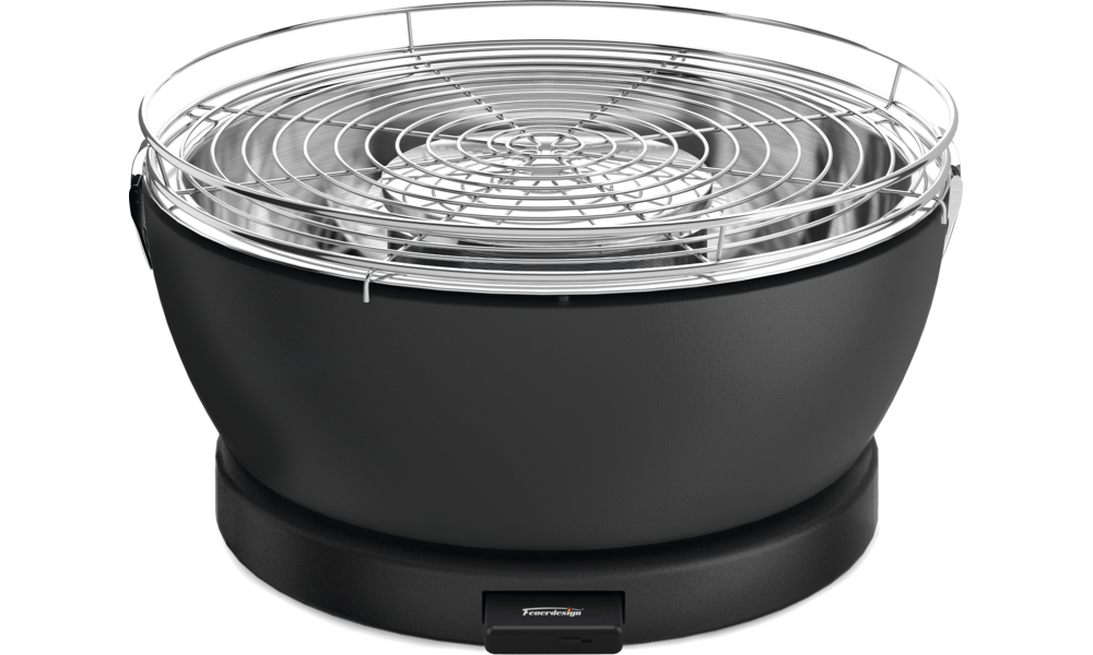 Herausnehmbares, akku-betriebenes Lüfter-Modul (wiederaufladbar über Micro-USB Kabel), 3-stufig regelbar für schnelles Anzünden und optimale Grilltemperatur - bis zu 4 h Laufzeit. Brennkorb (max. 250 g Holzkohle) mit separatem Deckel schützt die Kohle vom abtropfenden Fett.