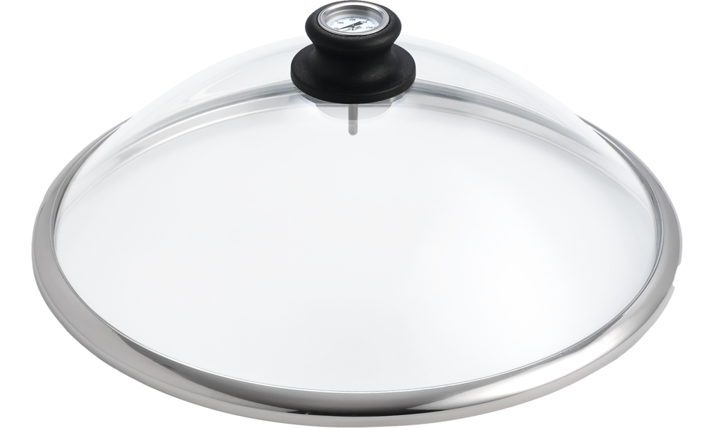 Material | | Knopf: Bakelit Deckel: Sicherheitsglas, Randprofil und Thermometer aus Edelstahl |
