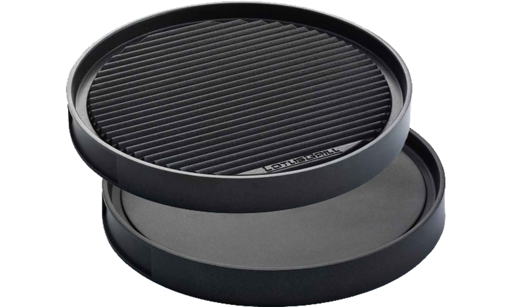 Für Liebhaber asiatischer Küche: die LotusGrill-Teppanyakiplatte. Die Platte kann beidseitig verwendet und einfach auf den Grillrost aufgesetzt werden. Mit oder ohne Grillhaube verwendbar. Nach dem Gebrauch ist die Teppanyakiplatte dank ihrer Antihaftbeschichtung einfach zu reinigen. Im Set aus einer Grill-Teppanyakiplatte mit hochwertiger Sonderlegierung und einem Zentrierring erhältlich; passend für den LotusGrill Original.