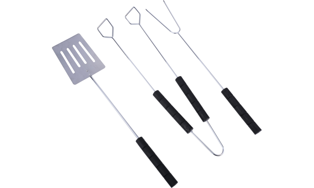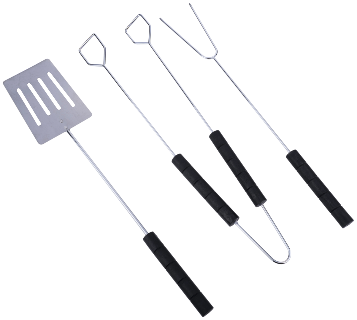 Grillbesteck 3-teilig. Dreiteiliges Grillbesteck bestehend aus Fleischgabel, Zange und Pfannenwender.