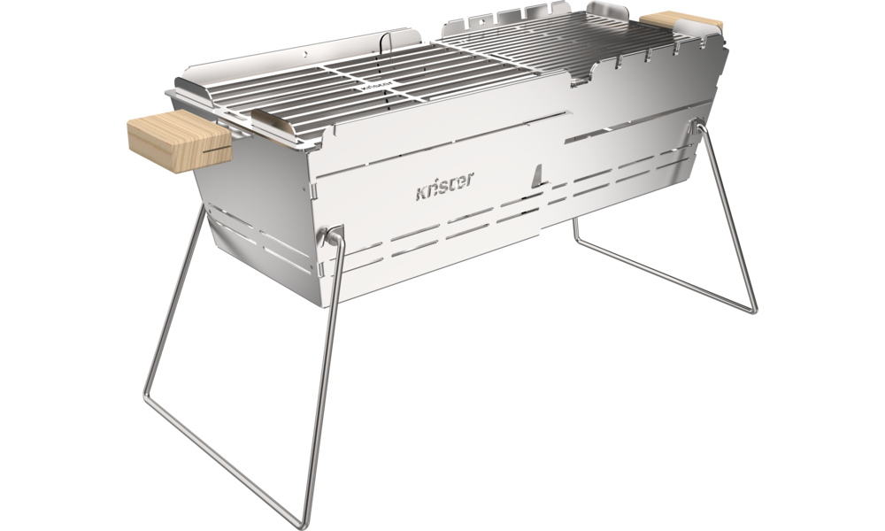 Knister ist der ideale Begleiter für ein entspanntes Grillerlebnis in der Stadt, eine coole Fahrradtour oder für Camping- und Segeltouren perfekt geeignet. Durch die kompakten Maße ist der Knister Grill super transportabel, lässt sich aber für großen Grillspaß auf die doppelte Größe auseinanderziehen.