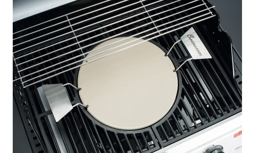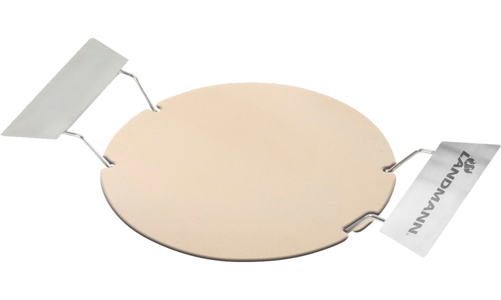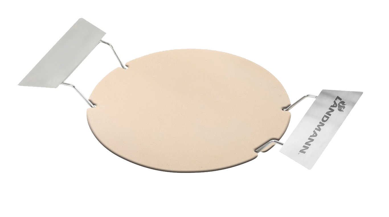 LANDMANN Pizzastein. Der Stein ist aus Cordierit und hat einen Durchmesser von 30,5 cm und ist ideal geeignet für leckere Pizzen, knusprige Flammkuchen oder auch frisches Brot. Durch die praktischen Edelstahleinsätze mit -griffen lässt sich der Stein ganz einfach vom Grill nehmen. Geeignet für Holzkohle- und Gasgrills und den Backofen. Gewicht 2,95 kg. Nur solange Vorrat reicht!