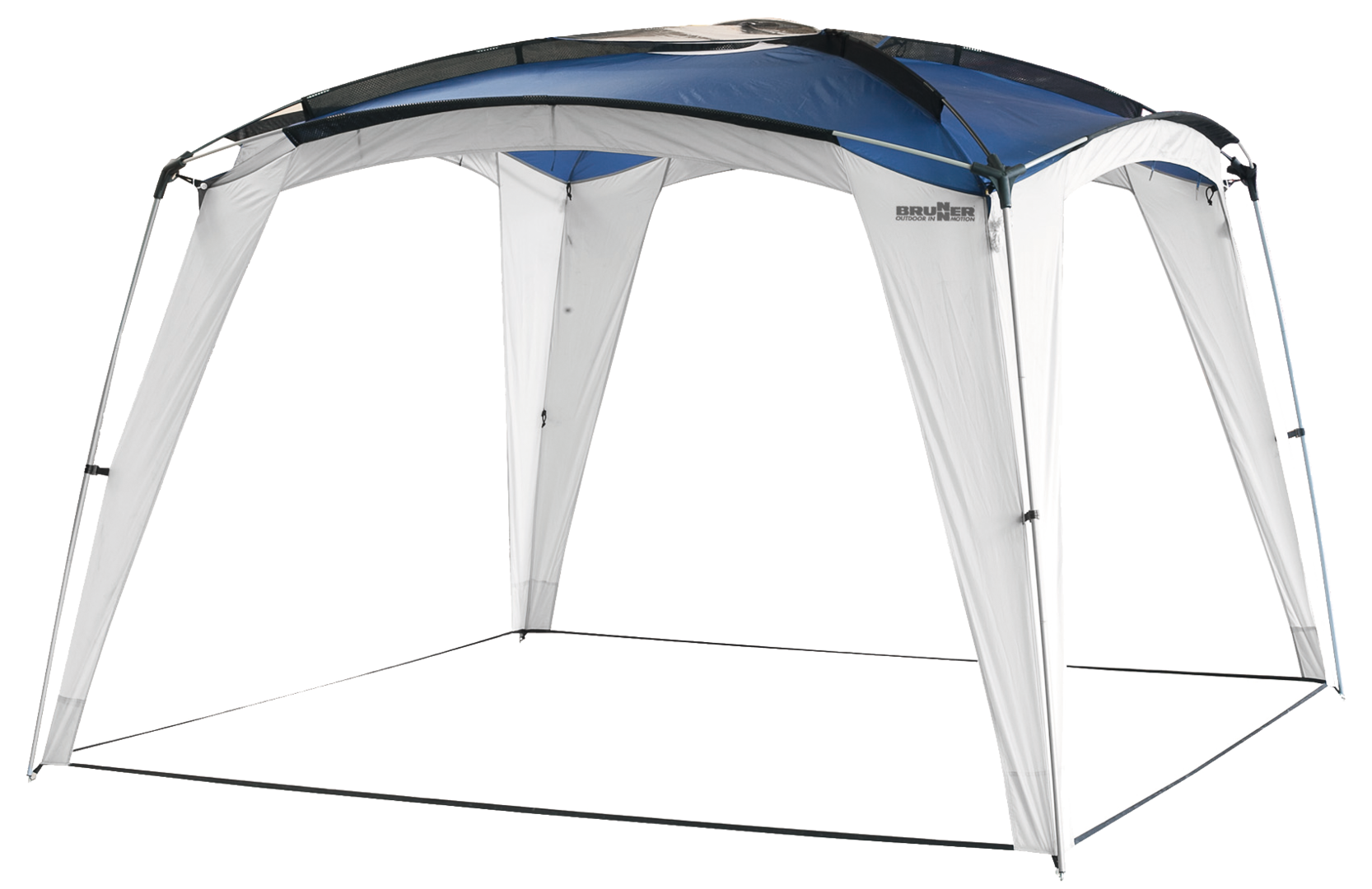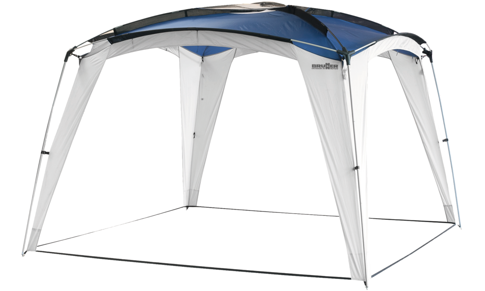 Hochwertiger Outdoor-Pavillon mit außenliegendem Stahl- und Fiberglasgestänge.