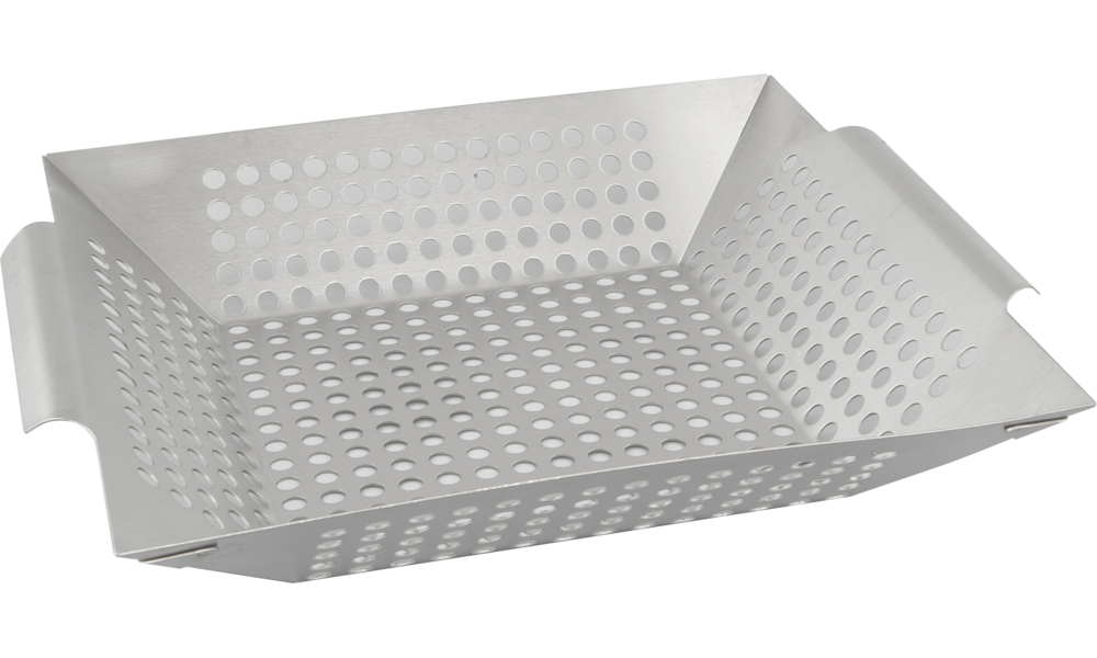 Grillkorb aus Edelstahl für die Zubereitung von Gemüse.