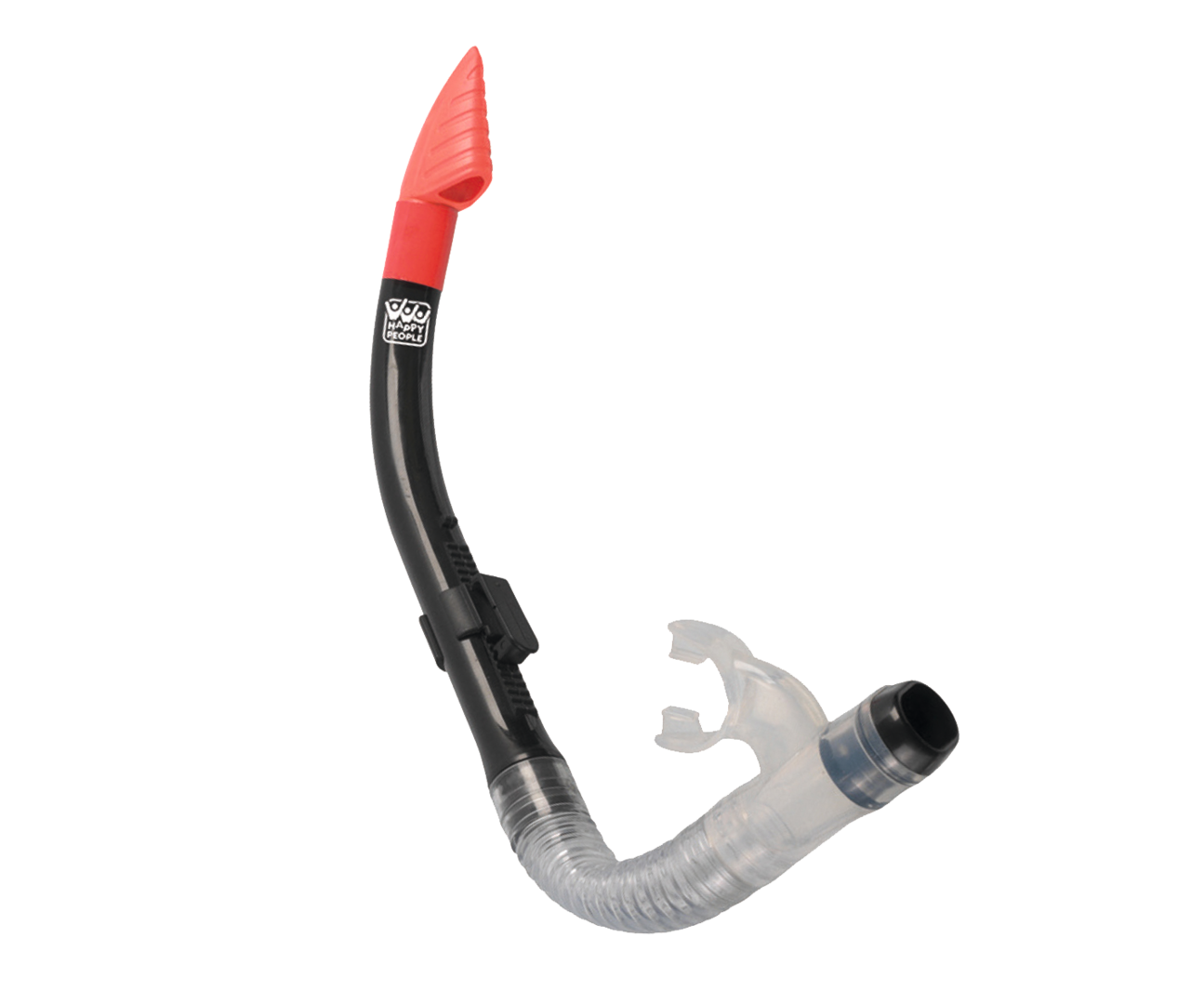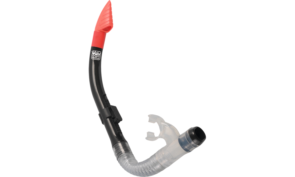 Schnorchel für Erwachsene. Hochwertiges PP-Rohr mit “semi-dry top“ PVC-Mundstück und Wasserausstoßmembran aus Silikon, Clip-Verschluss.
