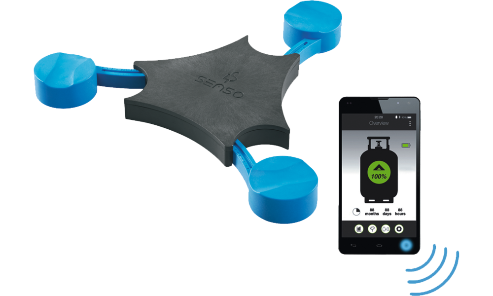Der Füllstandsmesser Senso4s BASIC misst das Gewicht der Gasflasche und übermittelt diesen Wert per Bluetooth an die App. Diese errechnet automatisch den Inhalt und erstellt eine Verbrauchsprognose.
