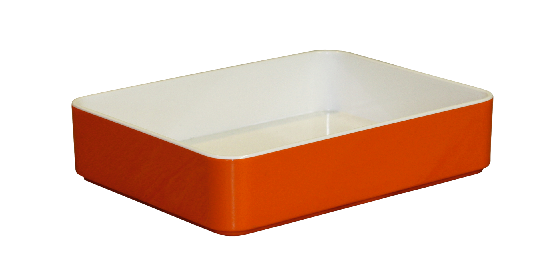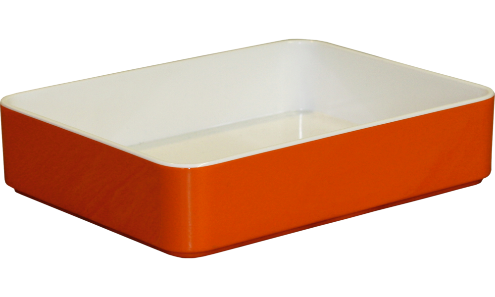 Stapeltablett. Modernes Tablett aus Melamin. Praktisch für zu Hause und unterwegs. Größe 18 x 14 cm. Farbe Orange.