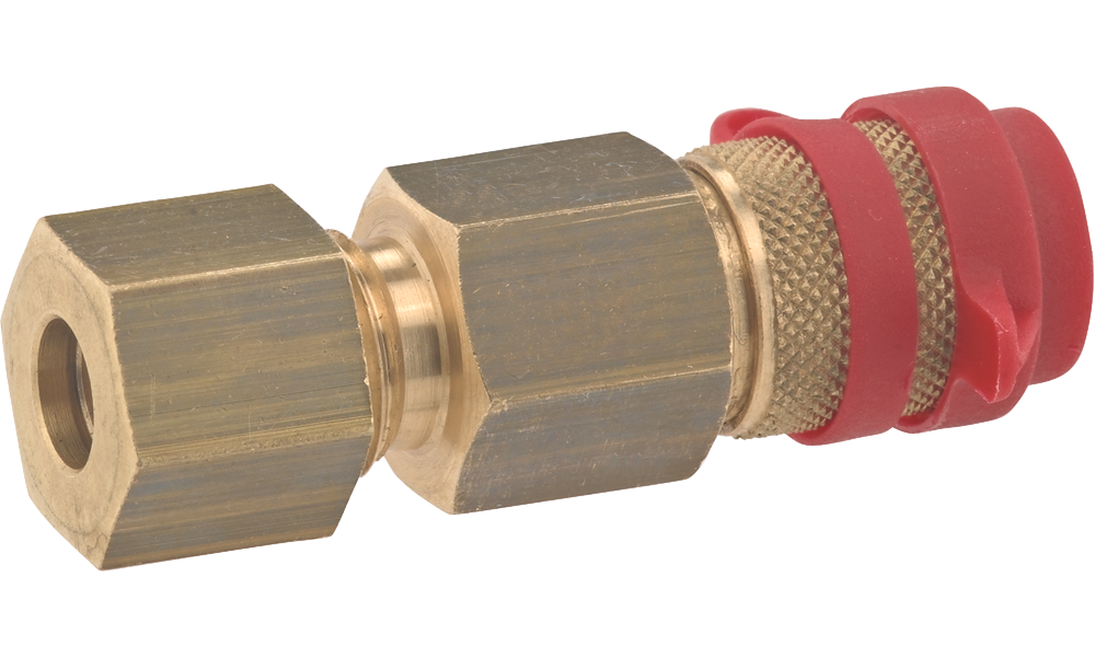 Max. zulässiger Druck: PS 5 bar. Schneidringverschraubung x Steckkupplung mit Überwurfmutter Typ M-MS und Schneidring Typ D-MS. RVS 8 x SKU.
