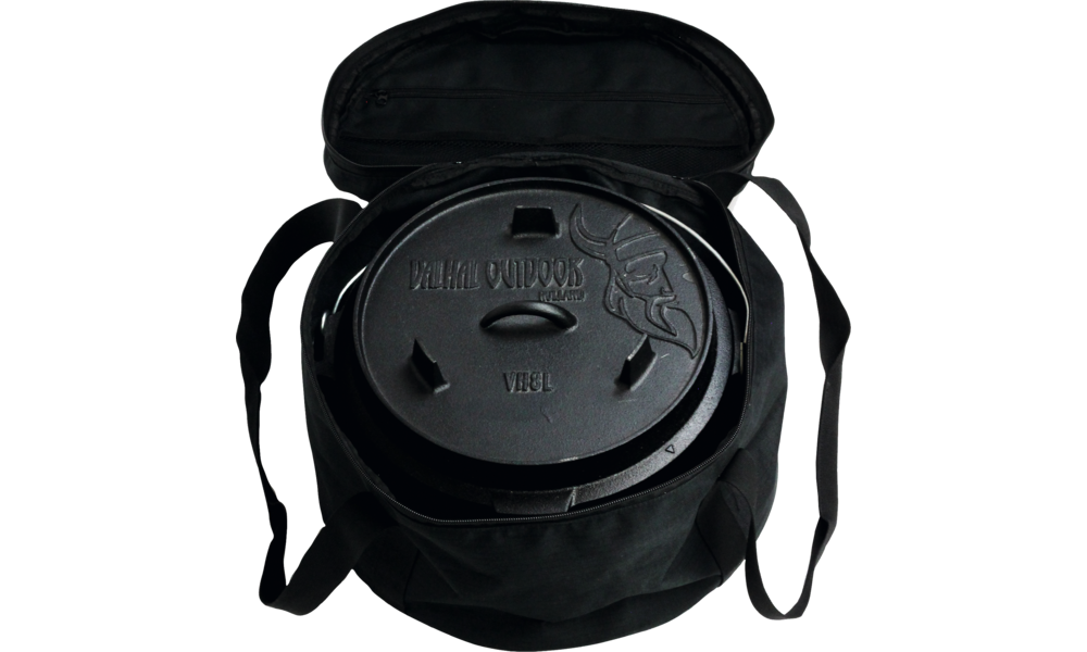 Tasche für Feuertopf. Tasche aus robustem Nylon um Ihren Feuertopf zu schützen und mitzunehmen. Der Boden ist verstärkt und innen befinden sich Ablagefächer, eine mit Reißverschluss. Die Tasche ist für Feuertöpfe bis einschließlich 8 l geeignet, sowohl mit als auch ohne Beine.