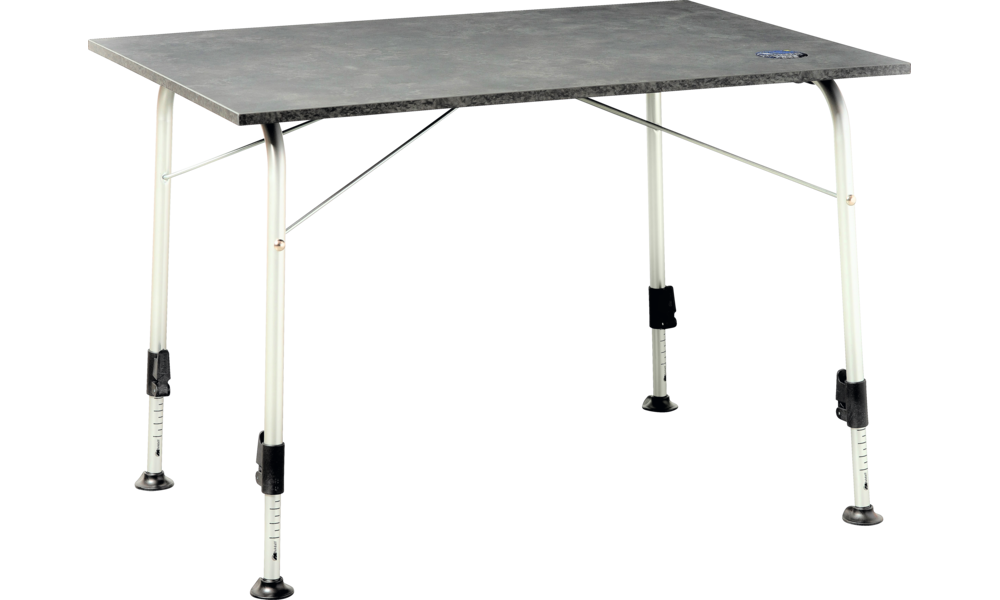 Die hochwertige, zu 100 % wetterfeste Tischplatte (SEVELIT leicht, hitzebeständig bis zu 180 °C) und das mit Aluminium anodisierte Gestell, machen die Tische MAJESTIC ultraleicht. Jeder Tischfuß hat eine Auflagenvergröβerung welche nachgibt, wenn der Untergrund dies erfordert. Die Tischhöhe ist von 57 bis 76 cm einstellbar.