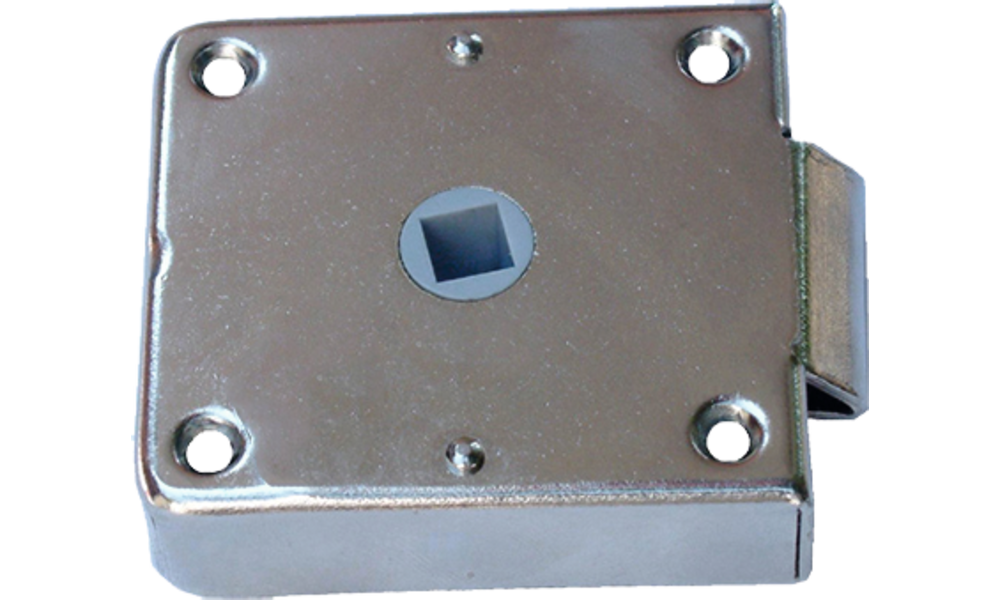 Aus Edelstahl, Außenbeschlag vernickelt. Ohne Drückergarnitur.