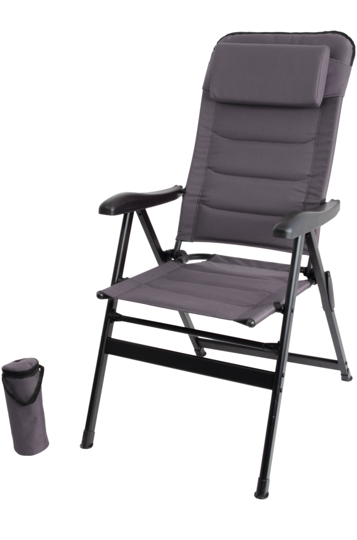 Aluminium-Klappsessel, 7-fach verstellbar, inklusive verstellbarem Kopfkissen, Kühltasche zum Einhängen an der Armlehne und Staufach auf der Rückseite der Rückenlehne. Bezug aus Polyester 600D (100 % Polyester).
