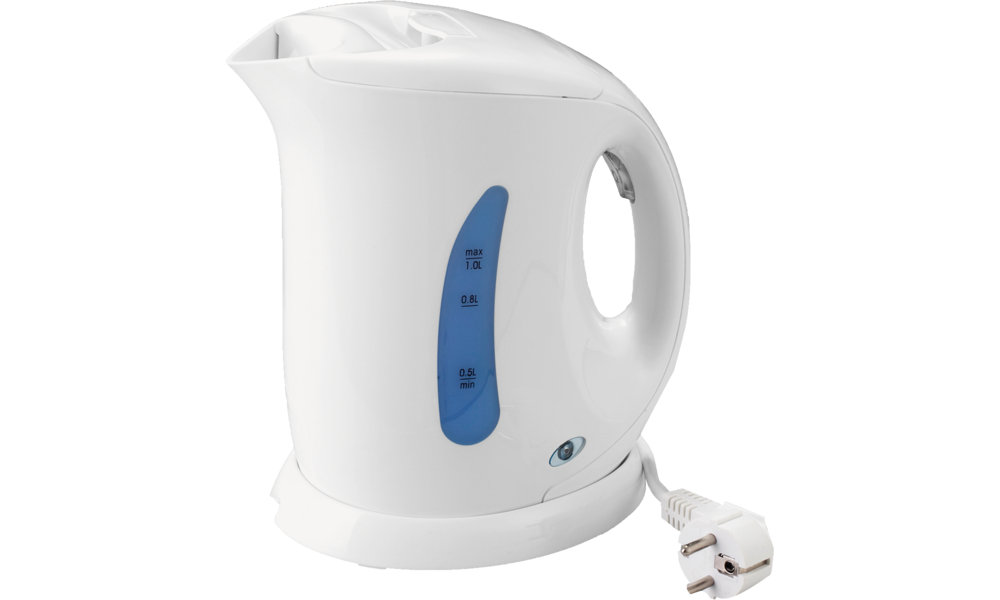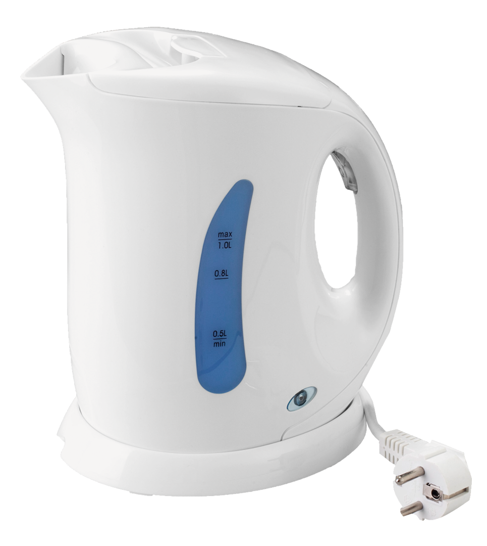 Wasserkocher BOWA. Mit automatischer Abschaltung bei Erreichen des Siedepunktes. Vernickeltes, unverdecktes Heizelement. Schnurlose Ausführung mit großer Wasserstandsanzeige. Kunststoffgehäuse mit Deckel. Technische Daten: Fassungsvermögen 1 l, Anschlussspannung 230 V, Leistungsaufnahme 750 W.