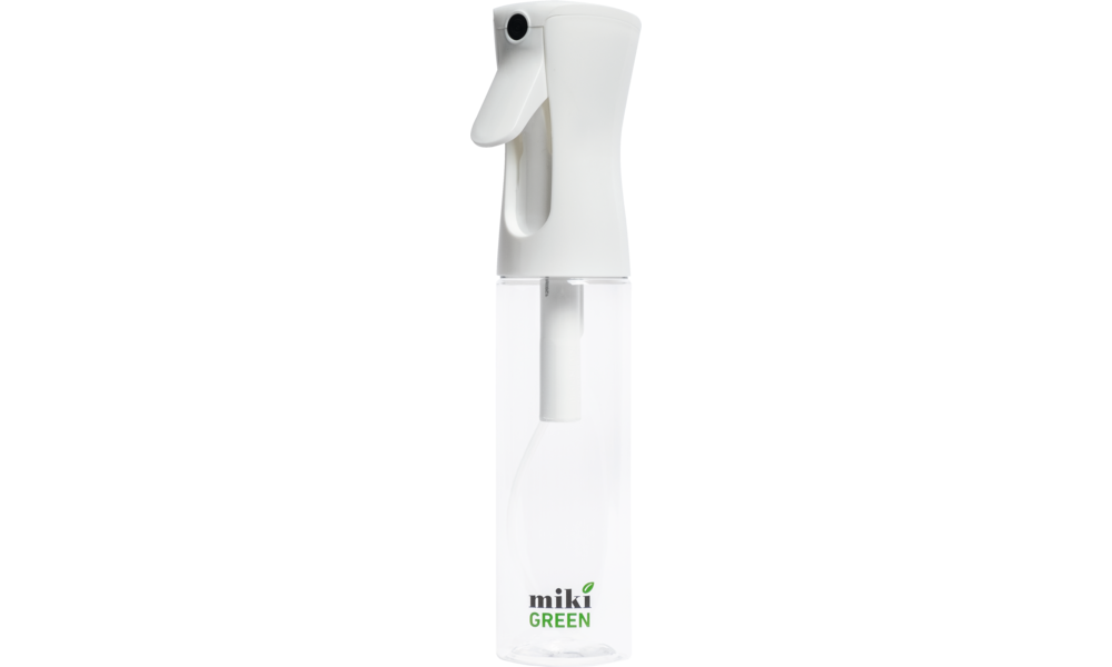 mikiGREEN Miki.Misch.Flasche. Formschöne Sprühflasche zum praktischen Mischen der mikiGREEN® Haushaltskonzentrate. Innovativer Sprühkopf für sicheres und kraftvolles Sprühen aus jeder Position. Farbe weiß.