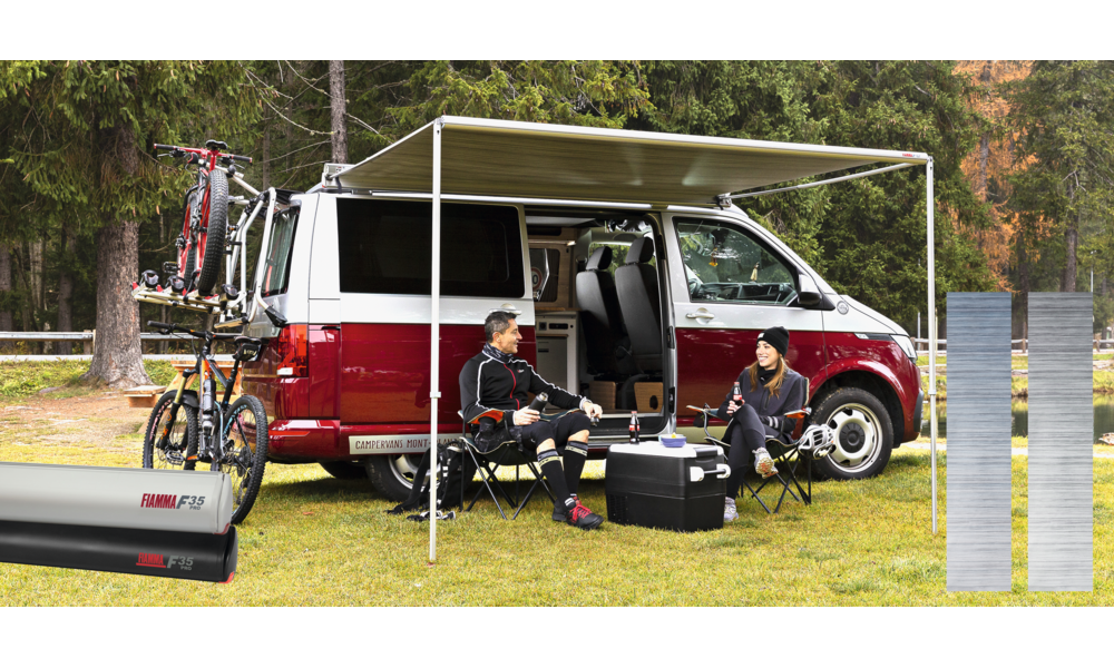 Die Fiamma F35 Pro ist die praktische, manuell zu betätigende Markise mit integrierten Stützfüßen in der Walze, welche dank der verschiedenen Halterungen an jegliche Campingbusse angebracht werden kann. Durch die Doppelkederschiene ist es möglich zwei Frontteile oder Zubehör gleichzeitig einzuziehen.