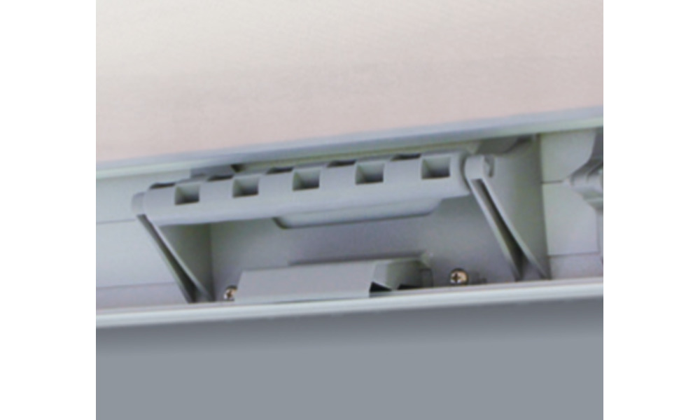 Mit doppelter Kederschiene in der Frontblende. Größe des Markisengehäuses 8,5 x 13,6 cm.