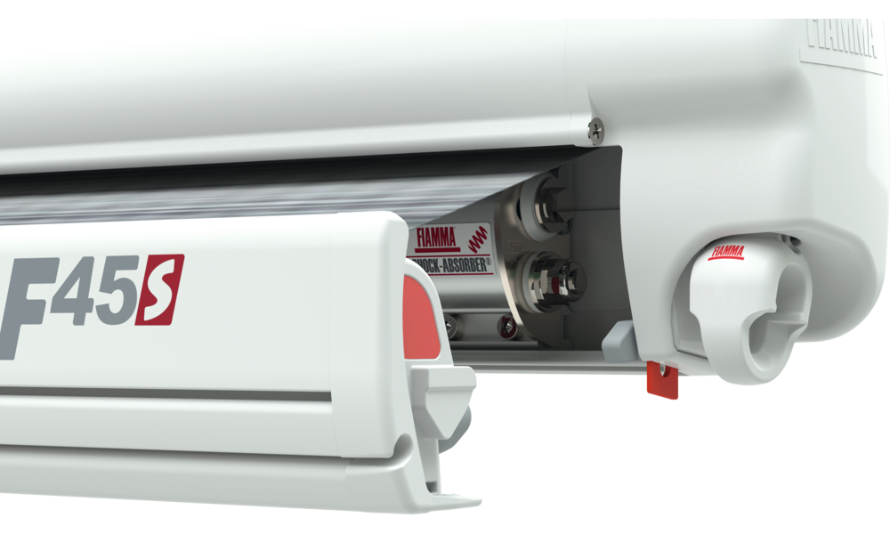 Ausstattung: Presto-Fix®, starke und platzsparende Gelenkarme mit doppelter Seilspannung, ab 300 cm Länge Extra Strong Arms serienmäßig, Dual Shock-Absorber®,