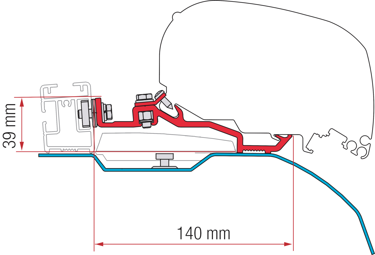 Kit Smart Clamp Ducato. Montagekit zur Montage der F80s Markise am Dachträgersystem Smart Clamp System von Thule.