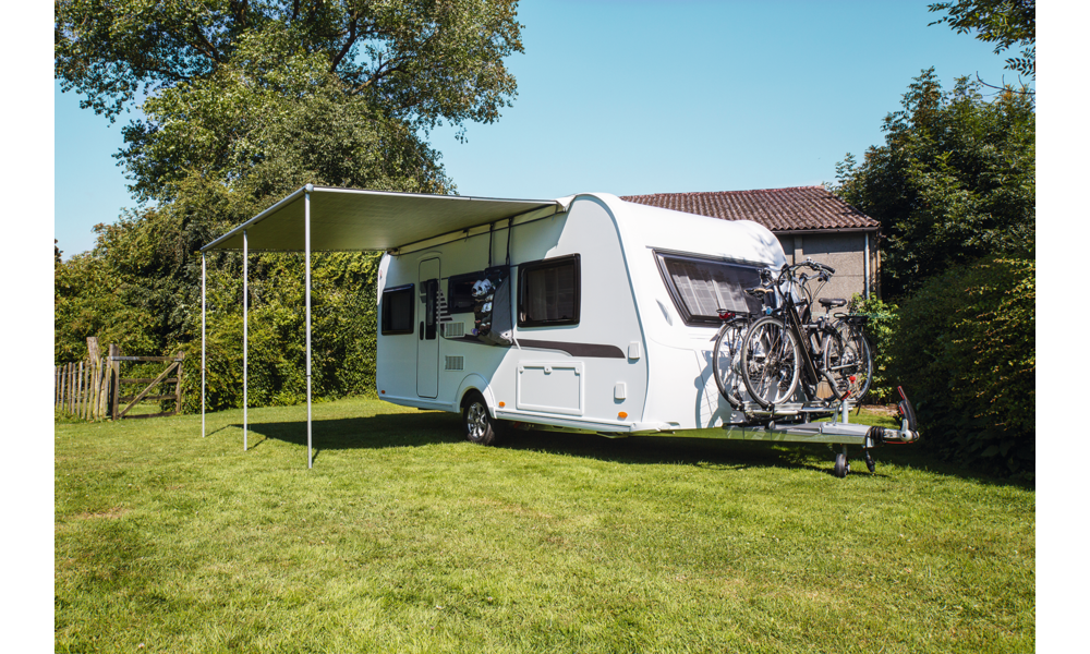Support-Kit - Ein integriertes Support-Kit verteilt den Druck der Spannarme sicher auf die Wohnwagenwand. Befestigt ist alles in der kompakten Tasche. Bohrungen am Fahrzeug sind nicht erforderlich.
