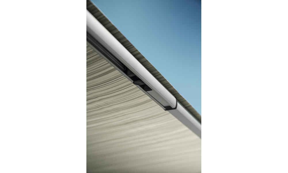 Perfekte Stabilität - Bemerkenswert hohe Stabilität für eine Taschenmarkise dank der stabilen Tuchrolle mit integrierten Spannarmen und Stützfüßen. Markisen ab 400 cm verfügen über eine integrierte Befestigung für einen optionalen dritten Stützfuß zur Sicherstellung höchster Stabilität.