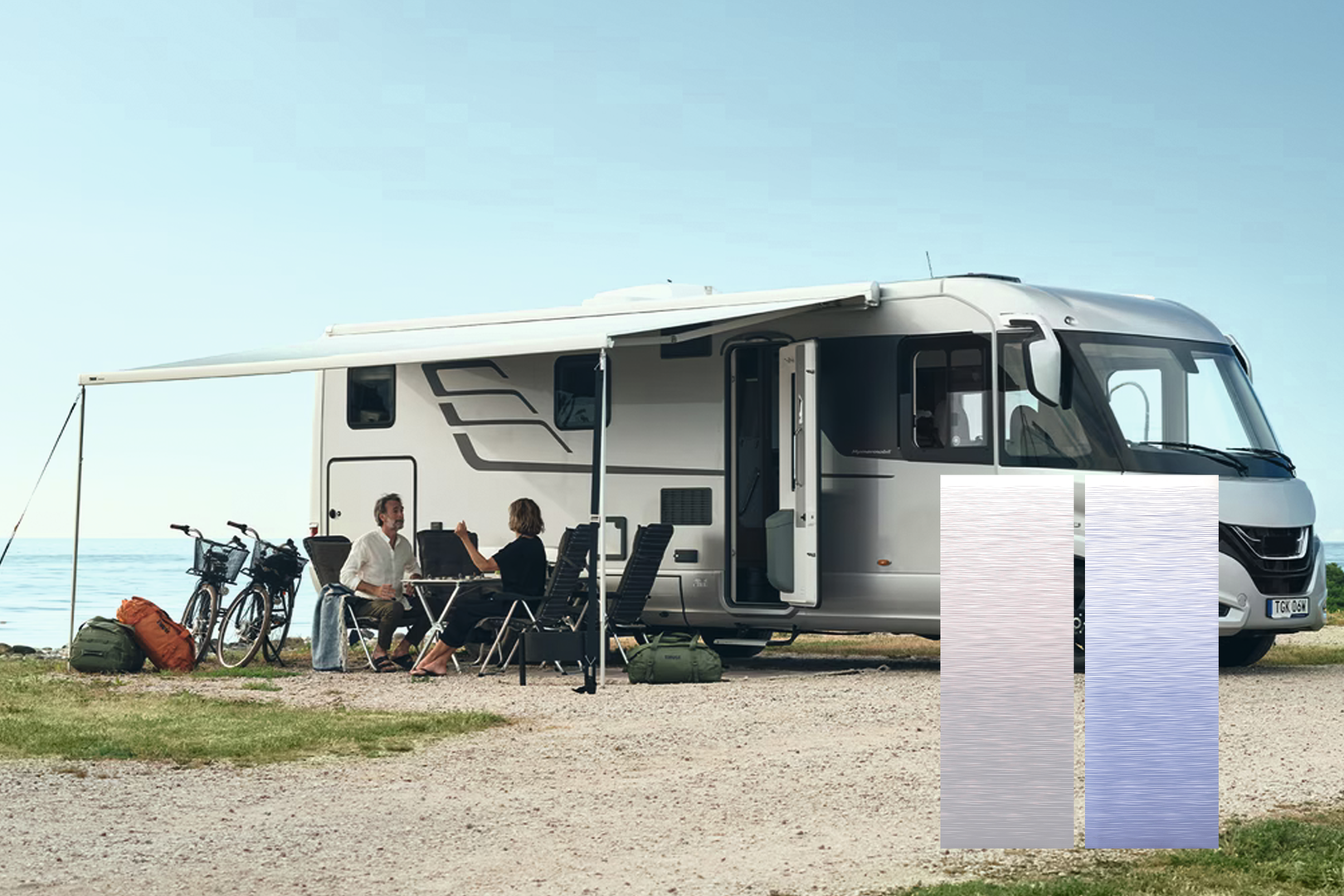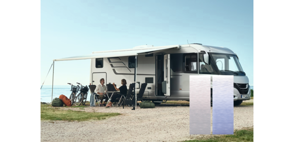 Die Modelle der Thule Omnistor Wandmarkisen der Serie 8000 gibt es auch als elektrisch betriebene Version mit integriertem Motor und Fernbedienung.