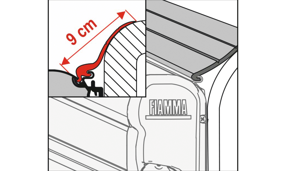 zwischen Fahrzeugwand und Markise. Preis per m. Rain Guard L