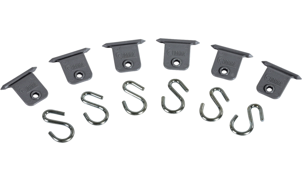 Awing-Hangers. S-Haken mit Keder. Zum Anbringen an die Frontblende, um leichte Gegenstände aufzuhängen. 6er-Set.