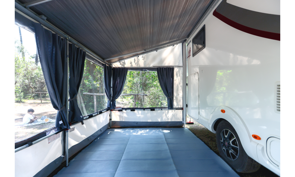 Spannstangen, um den Wänden von Privacy Room und ZIP bei Wind eine stabilere Struktur zu geben.