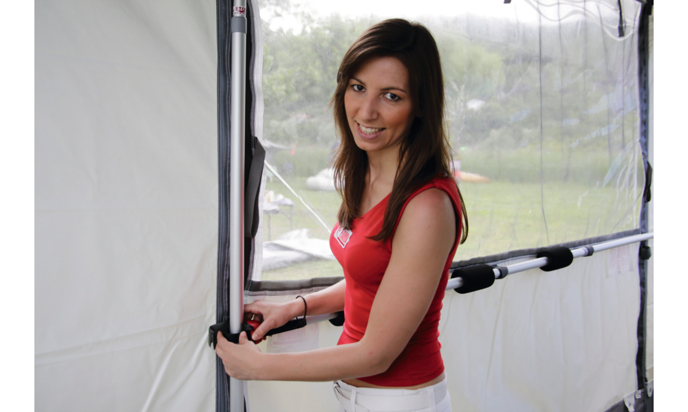 Spannstangen, um den Wänden von Privacy Room und ZIP bei Wind eine stabilere Struktur zu geben.