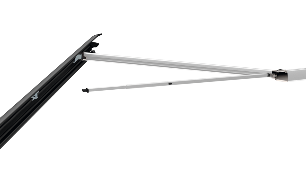 Halter für Teleskoparme: Neues optionales Zubehör für Markisen F80s (mit einer Länge von 320)* und F80L* für max. Stabilität. Dieses Zubehör verhindert das unerwünschte Schließen der Arme unter jeglichen Witterungsbedingungen**, da die Struktur auch unter hoher Beanspruchung sehr widerstandsfähig ist.