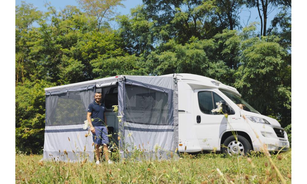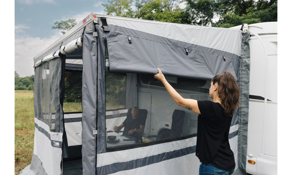Durch die Frontwanderweiterung lässt sich der Privacy Room ganz einfach an die richtige Markisengröße anpassen.