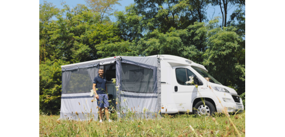 Durch die Frontwanderweiterung lässt sich der Privacy Room ganz einfach an die richtige Markisengröße anpassen.