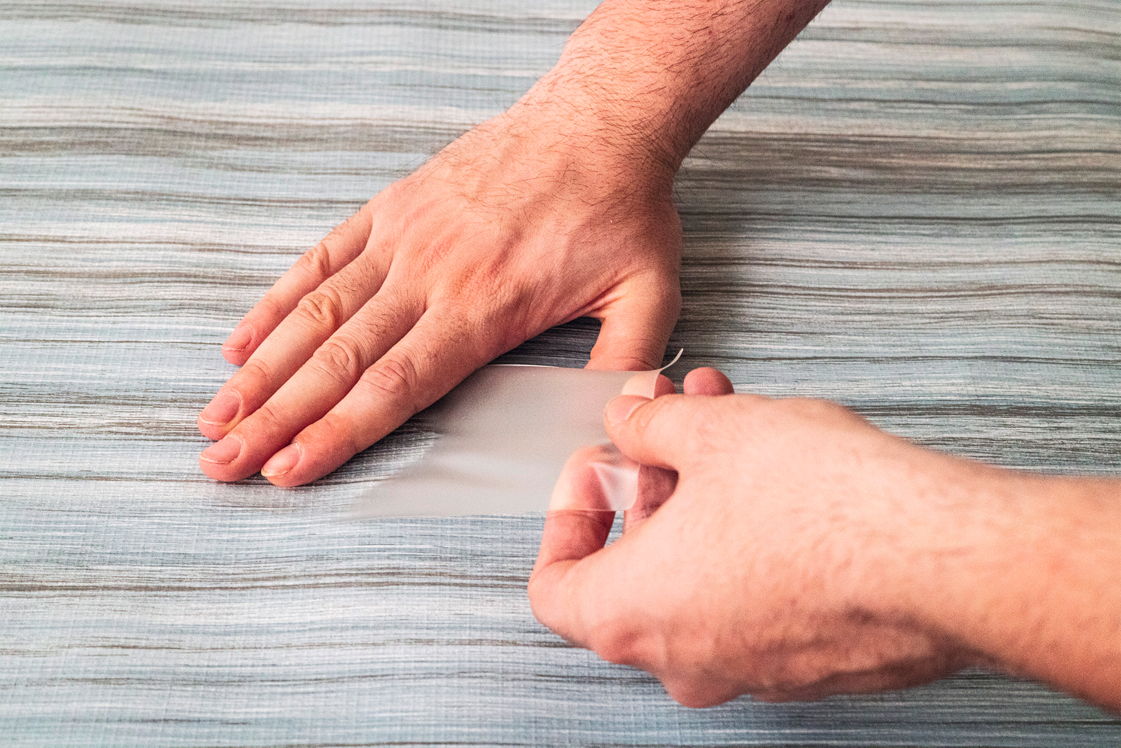 Repair-Kit Plus. Bestehend aus drei transparenten PVC-Klebestreifen (je 8 x 15 cm).