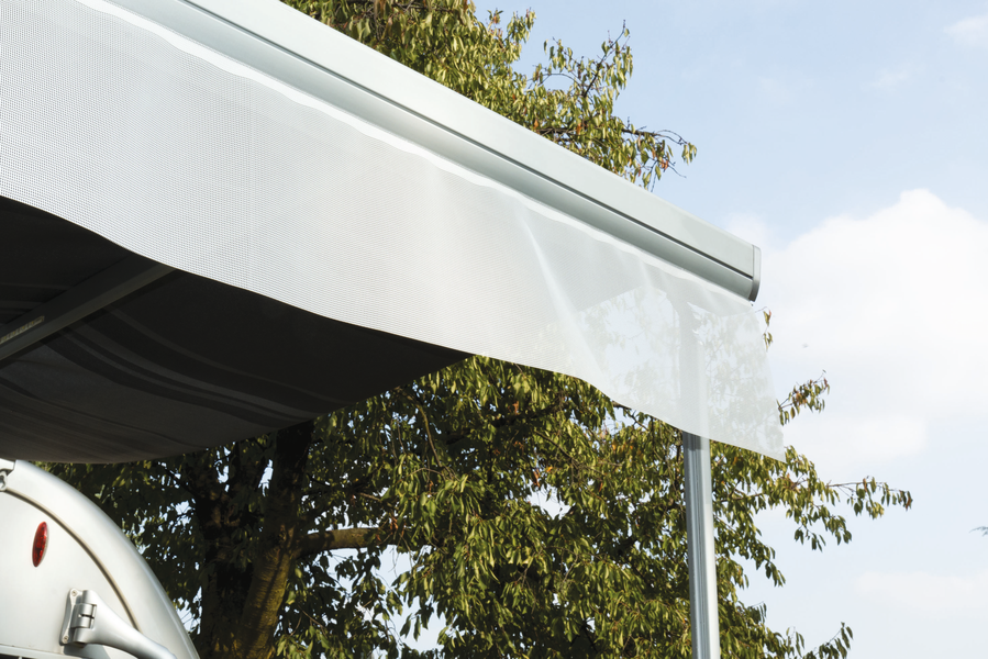 Shade Sun View. Praktischer und formschöner Volant aus Maschengewebe (40 % Polyvinylchlorid + 60 % Polyester) zum Einziehen in die Kederschiene der Frontblende bzw. Rolle. Passend für jede Markise mit einer Kederschiene im Frontteil.