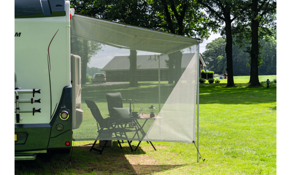 Spannen Sie die Sonnensegel einfach an der Front oder an der Seite Ihrer Fiamma oder Thule Kassettenmarkise.