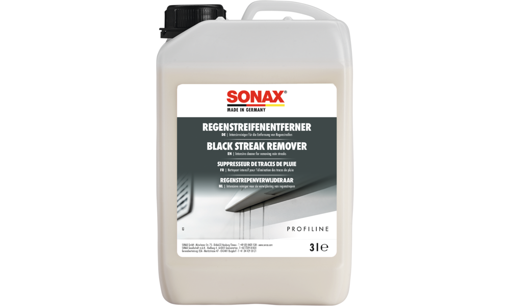 Schleifmittelhaltiger Intensivreiniger für die Entfernung von Regenstreifen auf Glas, Lack und GFK-Oberflächen.