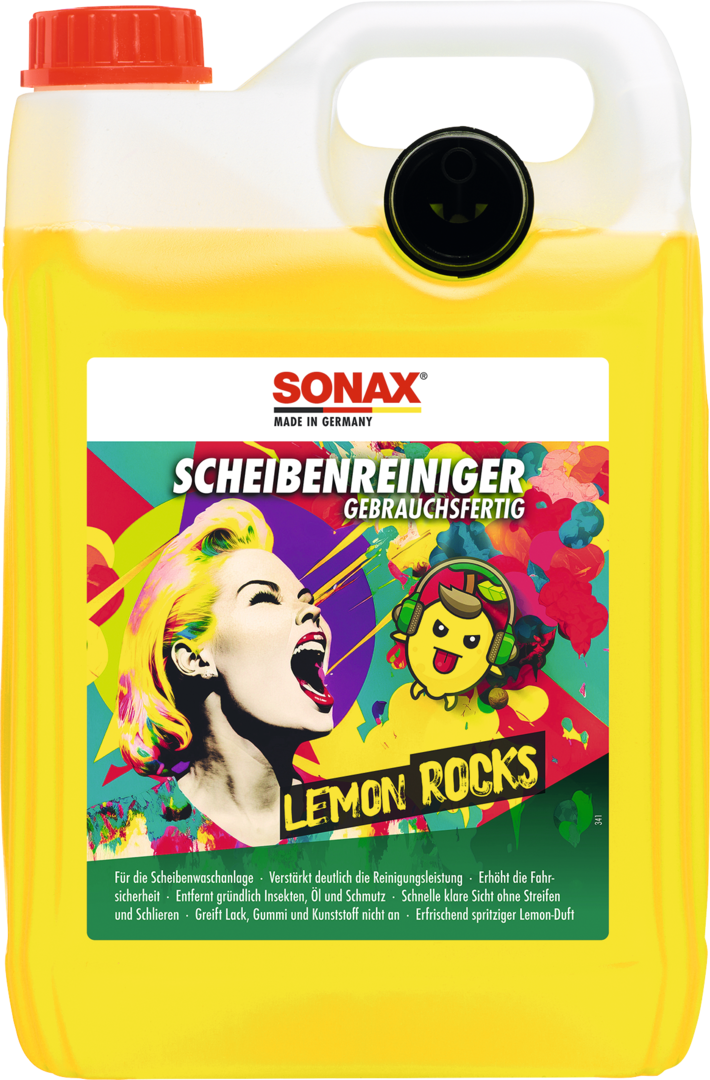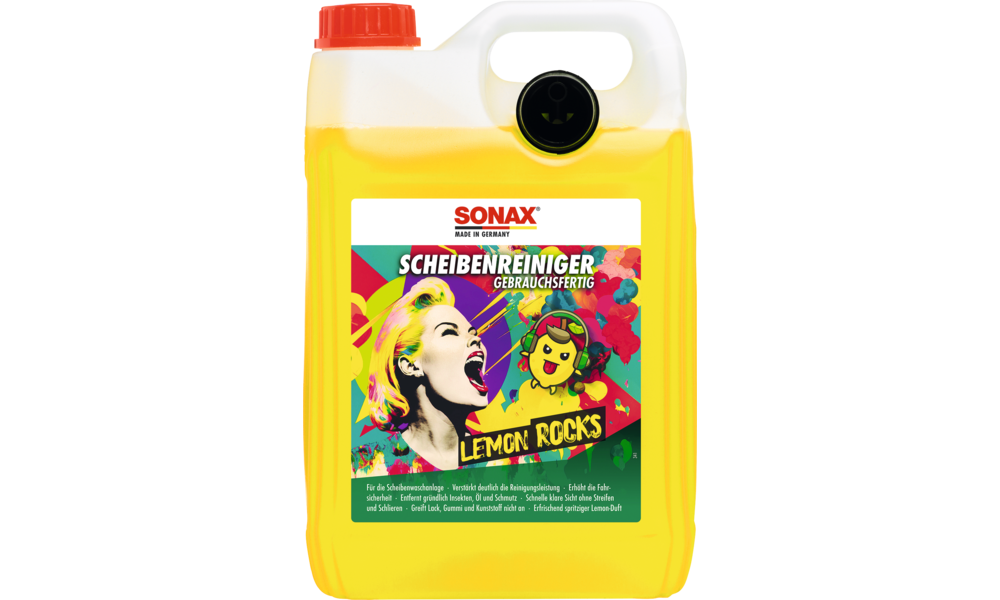 Der gebrauchsfertige Reiniger für die Scheiben- und Scheinwerferwaschanlage mit erfrischend spritzigem Lemonduft.
