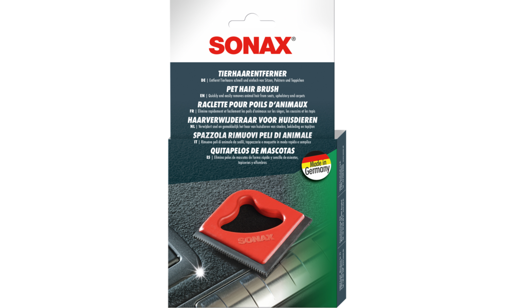 Ergonomisch geformter Spezialkamm mit flexiblen Gummilippen in zwei Größen. Tierhaare werden ohne großen Aufwand flächig entfernt. Ultraleicht für angenehmes und einfaches Überkopfarbeiten. Optimal zur Reinigung von schwer zugänglichen Ecken.