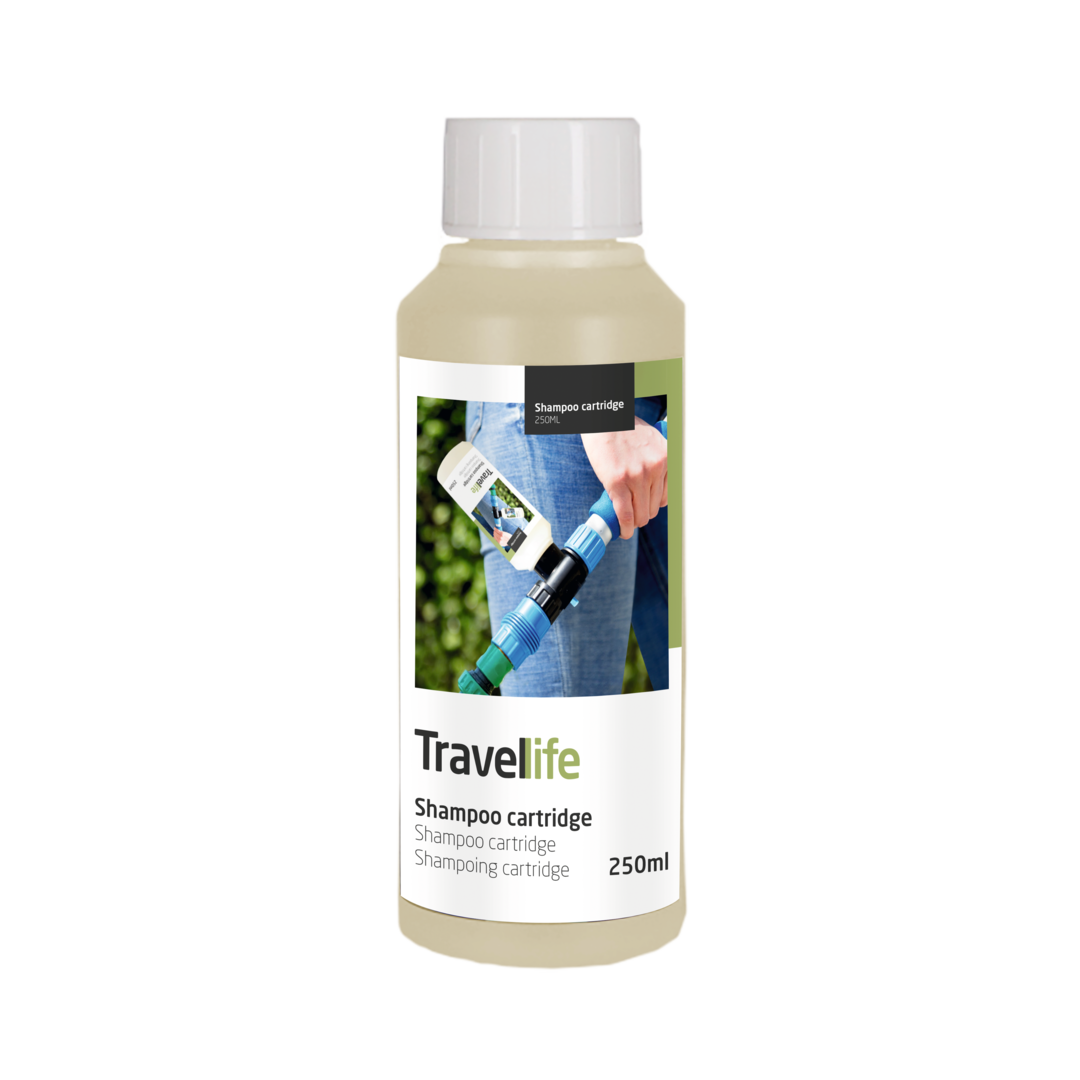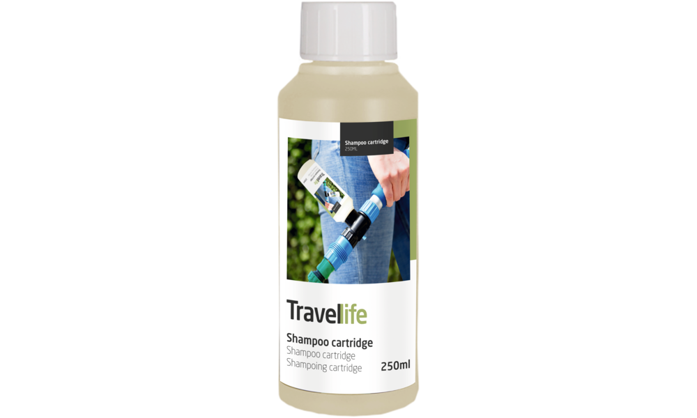 Verwenden Sie die Travellife Shampoo-Kartusche, um Ihr Wohnmobil oder Ihren Wohnwagen glänzend sauber zu machen. Die Kartusche lässt sich einfach an die Travellife Waschbürste Pro, Plus oder Ultra anschließen.