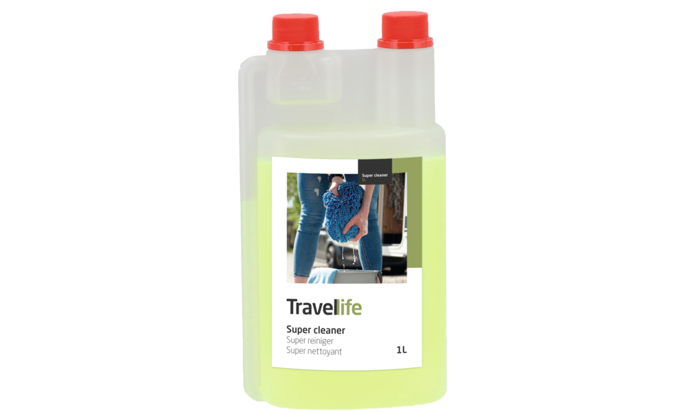 Bringen Sie Ihr Wohnmobil oder Ihren Wohnwagen mit Travellife Superreiniger auf Hochglanz. Der Reiniger ist biologisch abbaubar und befreit das Fahrzeug von hartnäckigem Schmutz.