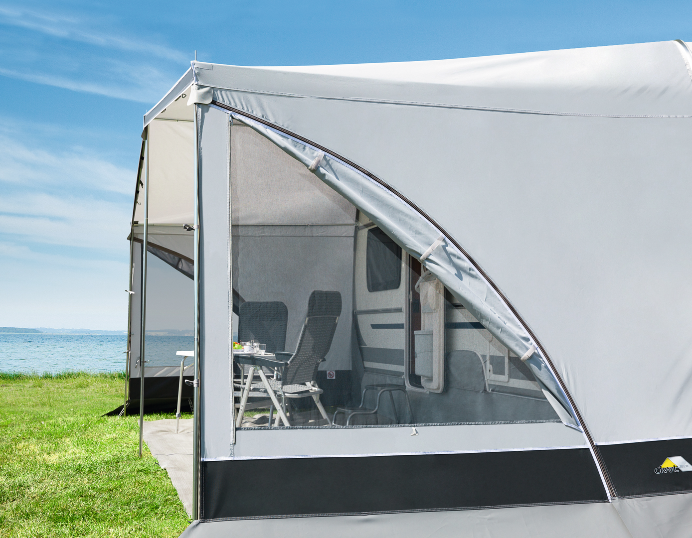 In der Ausführung „Fresh“ sind die Seitenwände mit Moskitogaze-Einsatz und Fensterklappe ausgestattet, die vor Zugluft und Sonneneinstrahlung schützen.