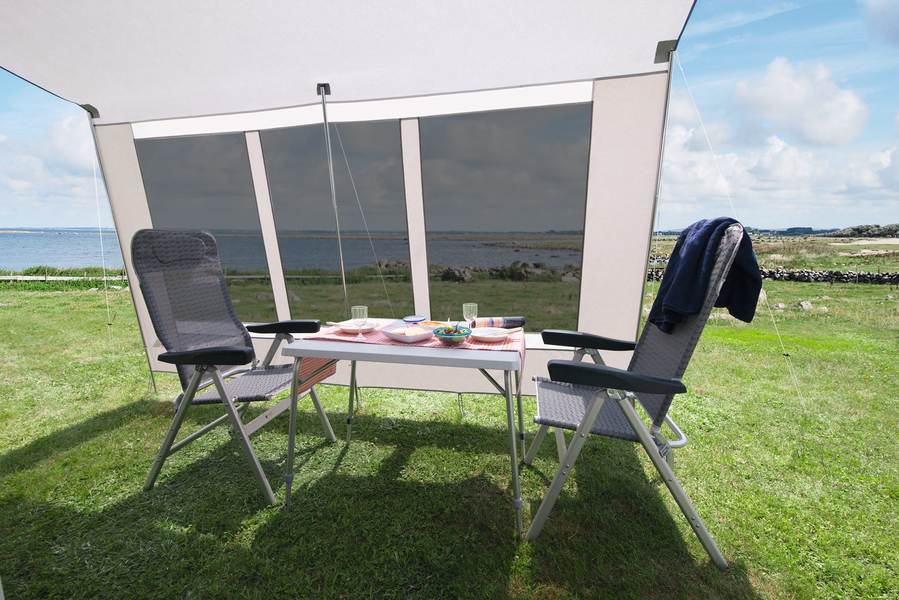 Sonnenvordach FOYER. Die getönten Fenste von Foyer bringen Sie in Urlaubsstimmung.