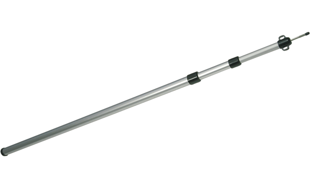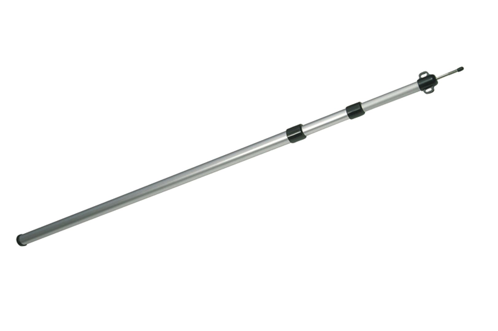 Alu-Teleskopstab. 3-teilig, aus eloxiertem Alu-minium ø 31/26/21 mm. Mit Stift und Bodenspitze.
