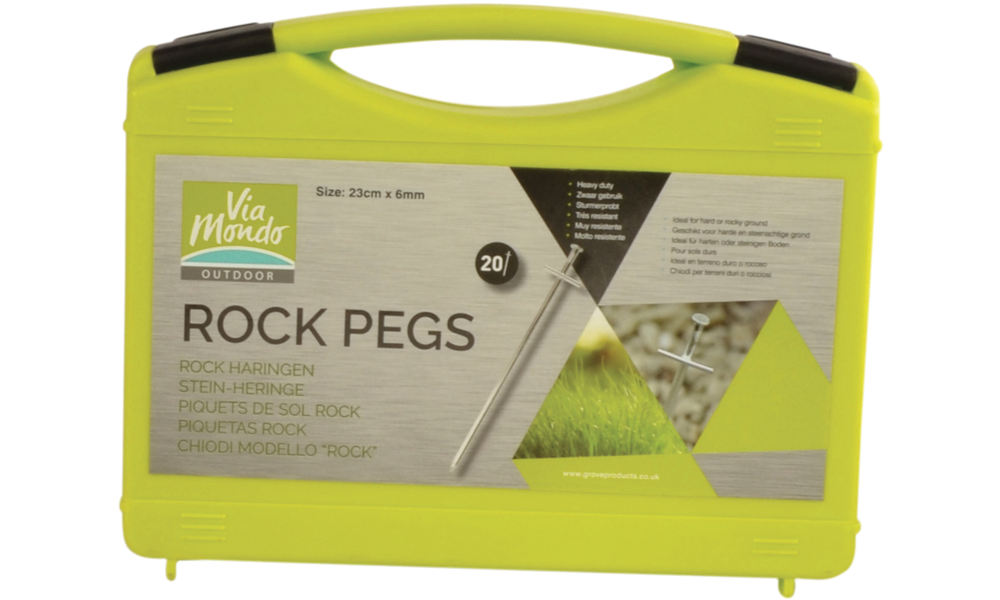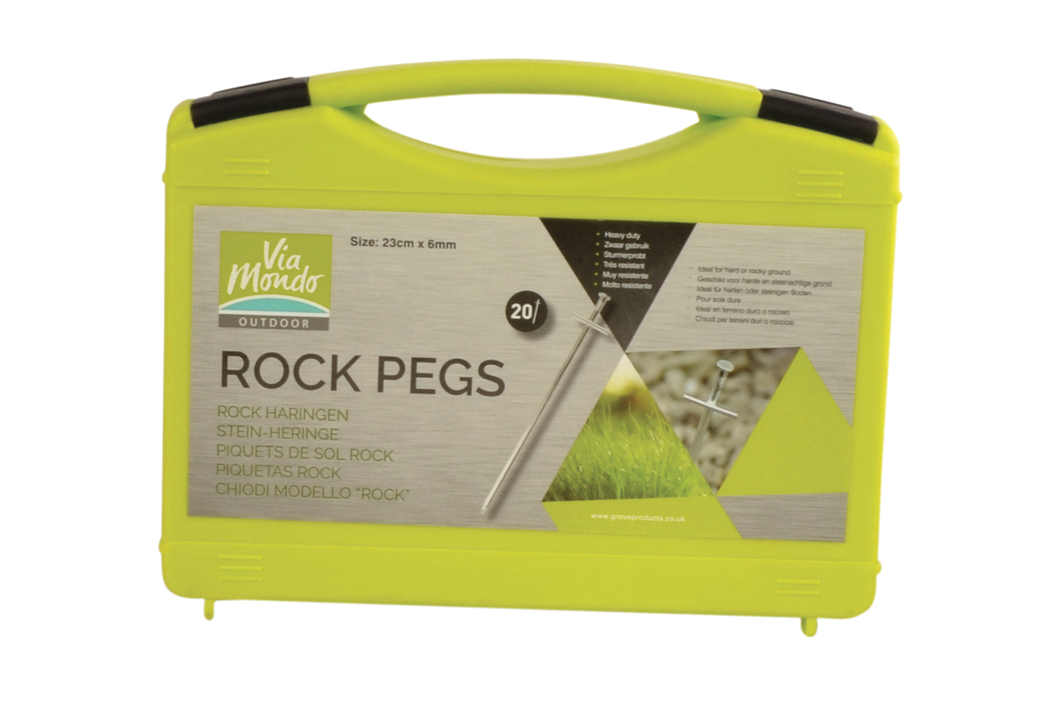 Inhalt: 20 Felsbodenheringe mit Stift, 23 cm lang, ø 6 mm, für harte und steinige Böden.