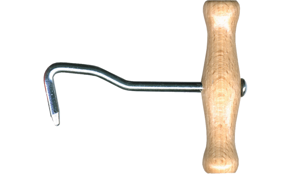 Heringsauszieher mit Holzgriff, aus verzinktem Stahl.