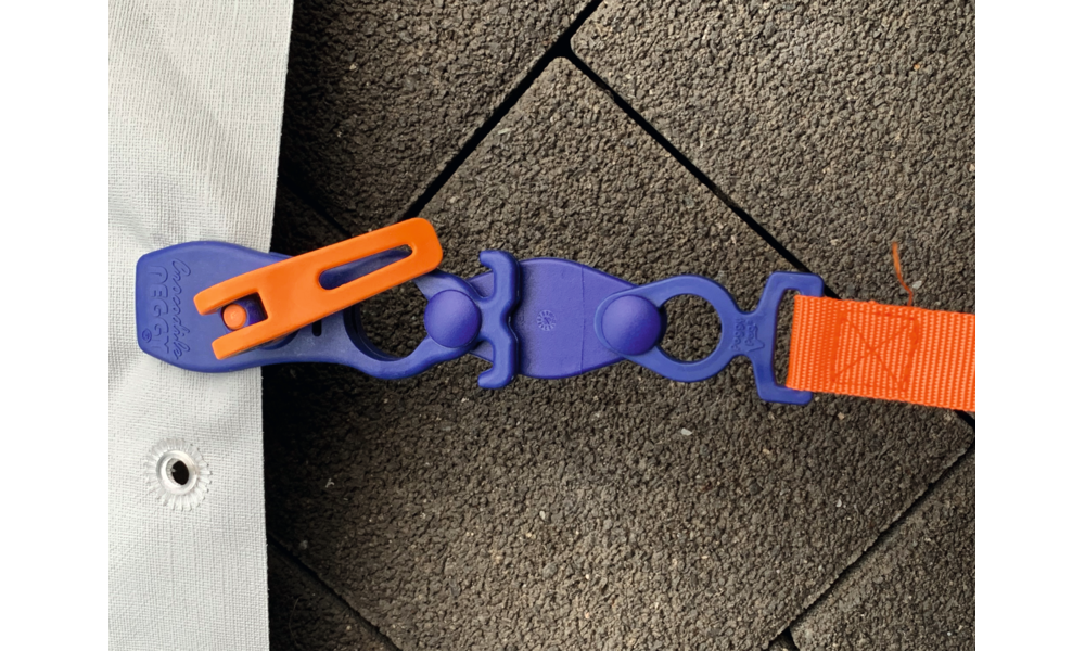 U-Connector. Mit dem U-Connector lässt sich der TieStrap mit dem Crocodile Peggy verbinden. Dadurch können auch Planen etc. mit dem TieStrap zum Boden gespannt werden.