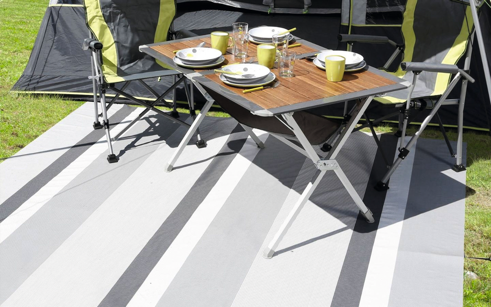 Hochwertiger Zeltteppich perfekt geeignet sowohl für Dauercamping als auch für kurze Aufenthalte.