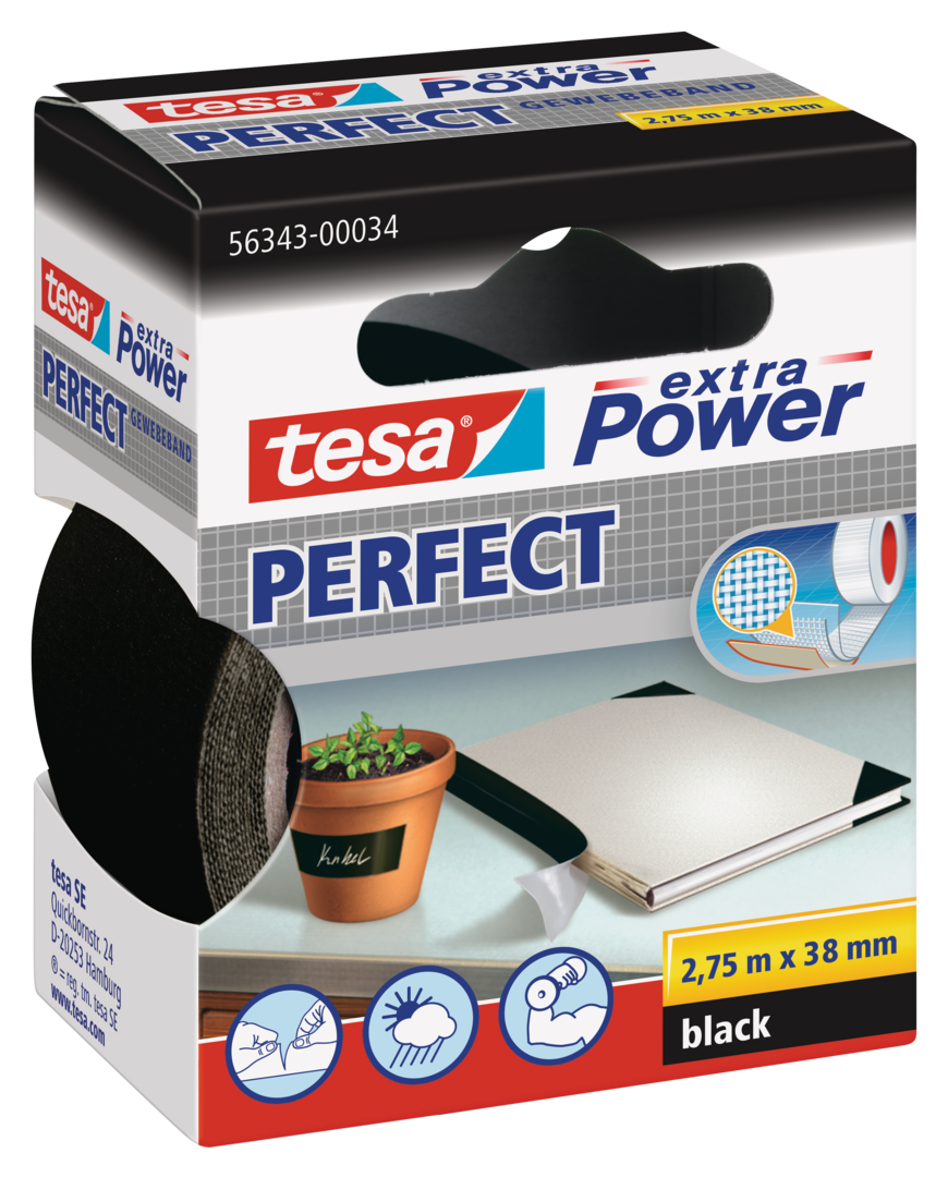 Das hochwertige tesa extra Power® Perfect Gewebeband (Gafferband) ist ein überaus nützlicher Alltagshelfer, der im Innen- und Außenbereich eingesetzt werden kann.